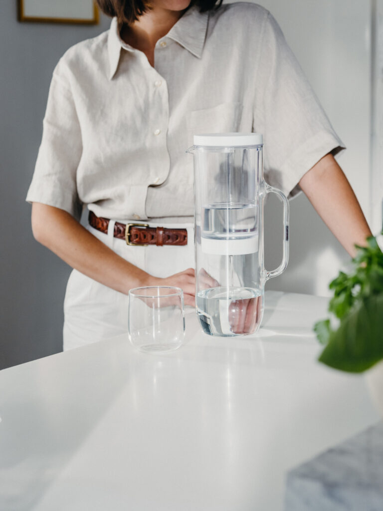 Creată pentru utilizare zilnică, carafa LUCY îmbină tehnologia de filtrare performantă cu un design minimalist și rafinat. Sistemul include o carafă din sticlă borosilicată de înaltă calitate, cu o capacitate de 2 litri, un recipient interior pentru apă nefiltrată și un capac etanș. Designul său subțire permite depozitarea facilă pe majoritatea rafturilor standard ale ușii frigiderului, astfel încât apa filtrată să fie mereu rece și gata de servire.