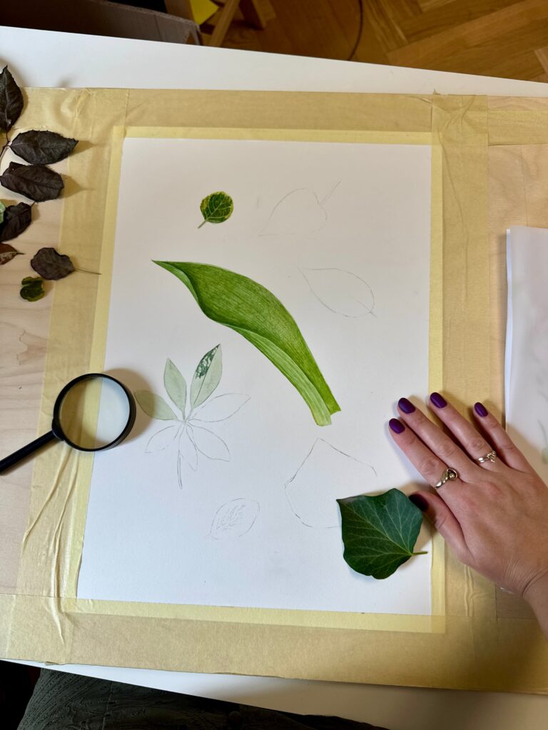 Pentru Maria Costake, procesul creativ nu este nici grăbit, nici fragmentat, ci construit cu atenție, observație și timp dedicat exclusiv creației. Ritmul în care lucrează este esențial pentru felul în care iau naștere ilustrațiile sale botanice.