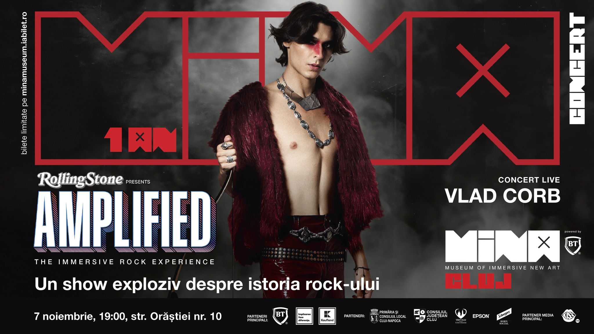 MINA Cluj, cel mai mare centru de artă imersivă din Europa, marchează un an de la deschidere printr-un eveniment aniversar cu totul special: premiera noului spectacol imersiv Rolling Stone Presents: AMPLIFIED – The Immersive Rock Experience, și un concert LIVE susținut de Vlad Corb, una dintre cele mai puternice voci ale noii generații de rock românesc. Evenimentul va avea loc vineri, 7 noiembrie, de la ora 19:00, iar biletele sunt disponibile aici.